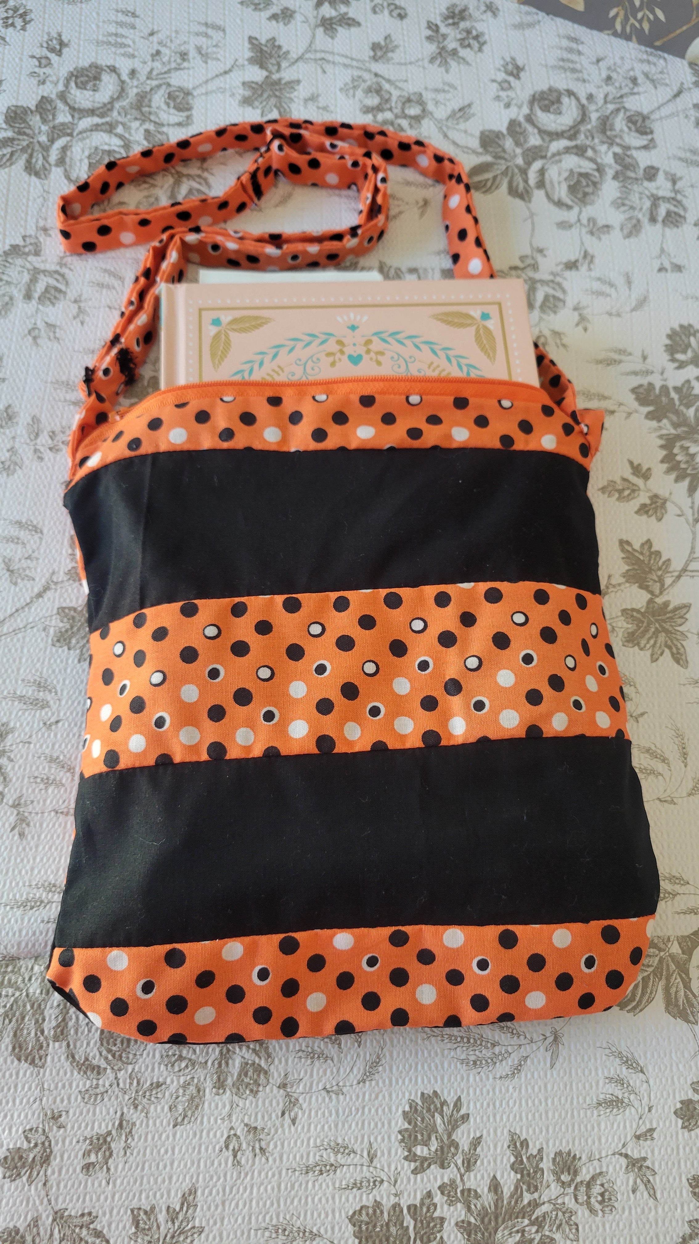 Black and White Polkadots in Orange Background in Quilted Angelica Style